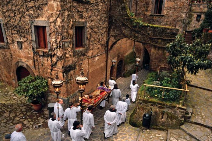 Il Venerdì Santo a Civita di Bagnoregio si svolge invece la Processione del Cristo Morto, una manifestazione molto sentita da tutti gli abitanti del posto, che ogni anno vi prendono parte. La Processione parte dalla Chiesa della vicina Bagnoregio per ritornare alla chiesa di San Donato a Civita prima della mezzanotte. Un rito tradizionale per scongiurare terremoti e catastrofi naturali.
